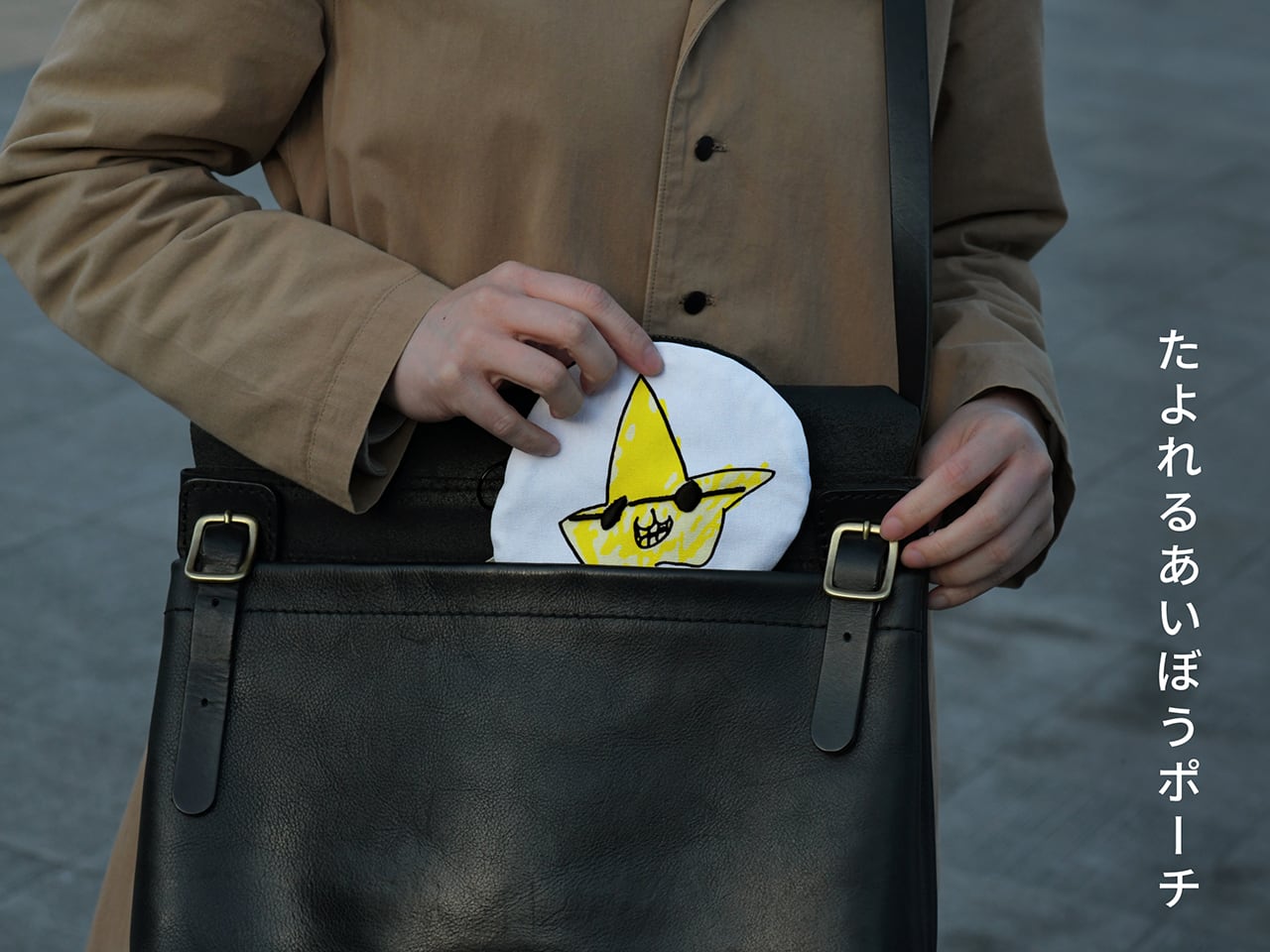 目があうと思わず笑顔になるキャラクターのポーチ。あなたの大切な小物たちをまとめ、守ってくれる心強い相棒です。ギラギラ、ふわふわ、ぷっくり。キャラクターにあわせた刺繍や素材であそびごころたっぷりに仕上げました。モチーフになった作品の特長をいかしたキーホルダー付き。 ー キラキラ輝くあやしい笑顔。 ー ぷっくりと立体感のある刺繍のサングラスをかけて、チャーミングで、どこかあやしげなお星さま。大切な小物がキズつきませんように。そんな願いを叶えてくれます。 ○原画作品 アーティスト :塚本和行 作品タイトル :あやしいスターのえがお ---------------------------------- ・素材 -表側:綿 -裏側:ポリエステル -内側:綿 ※アクリルキーホルダー付き ・サイズ:14×14cm ・日本製 ご注意ください ・メッシュの間に汚れが入り込む場合があります。ブラシなどで落としてから水洗いしてください。 ・強く洗うと刺繍部分がよれる場合があります。 ・一点一点手作りのため、サイズ・色合い・刺繍に若干の個体差があります。 ・モニター環境により、実際の色味と多少異なって見える場合があります。