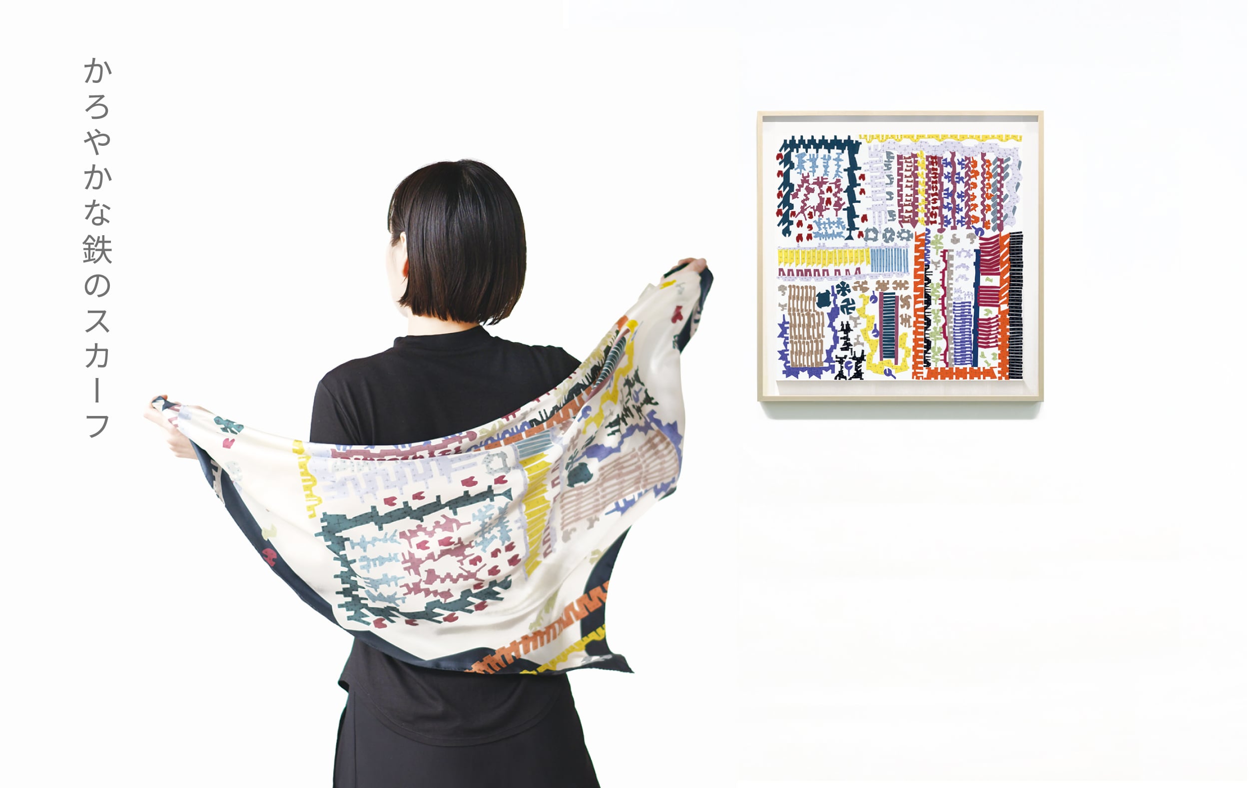 SPECIAL ITEM INCURVEのリブランディング記念に制作した特別なアイテムです 特製ブックレット付きギフトボックスに入れてお届けします ー 鉄とシルクの優美な共演。ー 鉄骨図面の作品がデザインされたシルク100%のスカーフ。INCURVEのリブランディング記念に制作した特別なアイテムです。さまざまな形状の鉄骨部材が、色とりどりの豊かな表情で並びます。特製ブックレット付きギフトボックスに入れてお届けします。 ○原画作品 アーティスト :寺尾勝広 作品タイトル :カゴ ---------------------------------- ・素材:絹100% ・サイズ:88×88cm ・日本製 ご注意ください ・日光や照明に長時間あたると、色あせや変色する恐れがあります。 ・水や汗、化粧品の付着はシミの原因となります。 ・水洗いはできません。ドライクリーニングをご利用ください。 ・デリケートな素材で摩擦に弱く、引っかかりやすくなっているため、お取り扱いにご注意ください。 ・スカーフを取り外したら、ハンガーなどにかけて風通しのよい、光の当たらない場所に半日ほど吊るして湿気を飛ばしてから保管ください。 ・シワが気になるときは、低温のアイロンをかけてください。 ・ご自宅でアイロンをかける際はあて布を使用し、手巻きのふっくらとした縁はつぶさないように、アイロンは縁の手前で止めてください。