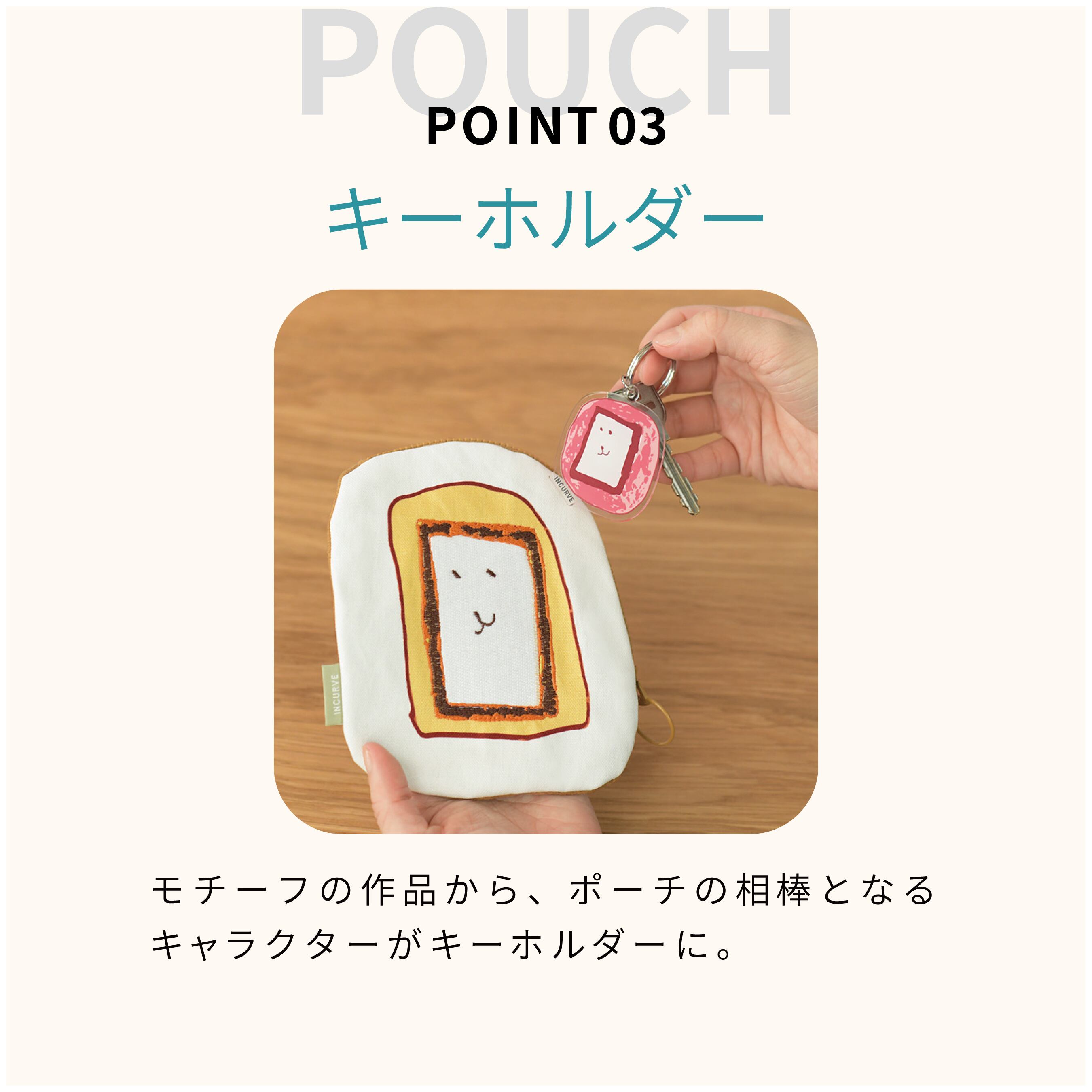 目があうと思わず笑顔になるキャラクターのポーチ。あなたの大切な小物たちをまとめ、守ってくれる心強い相棒です。ギラギラ、ふわふわ、ぷっくり。キャラクターにあわせた刺繍や素材であそびごころたっぷりに仕上げました。モチーフになった作品の特長をいかしたキーホルダー付き。