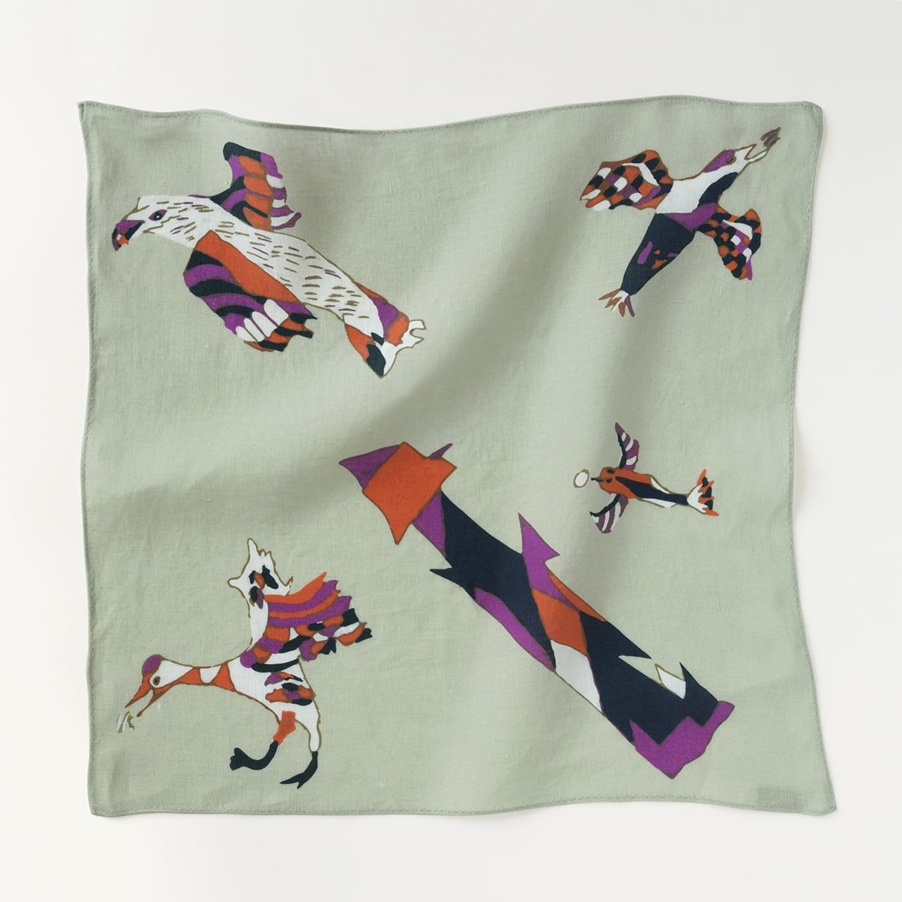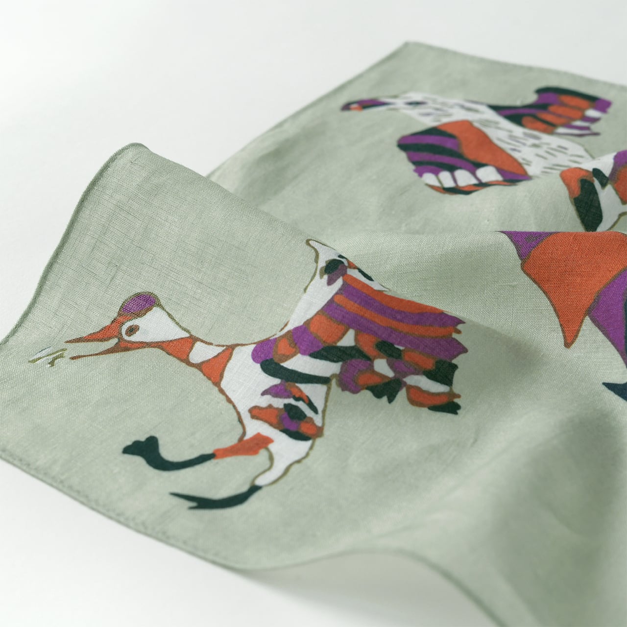 翼を広げ、思い思いの方角へ羽ばたく鳥たち。どこに向かっていくことも自由だと教えてくれます。使うたびにリネン生地がふっくらして、シックな色あいの羽がゆたかに育っていくようです。