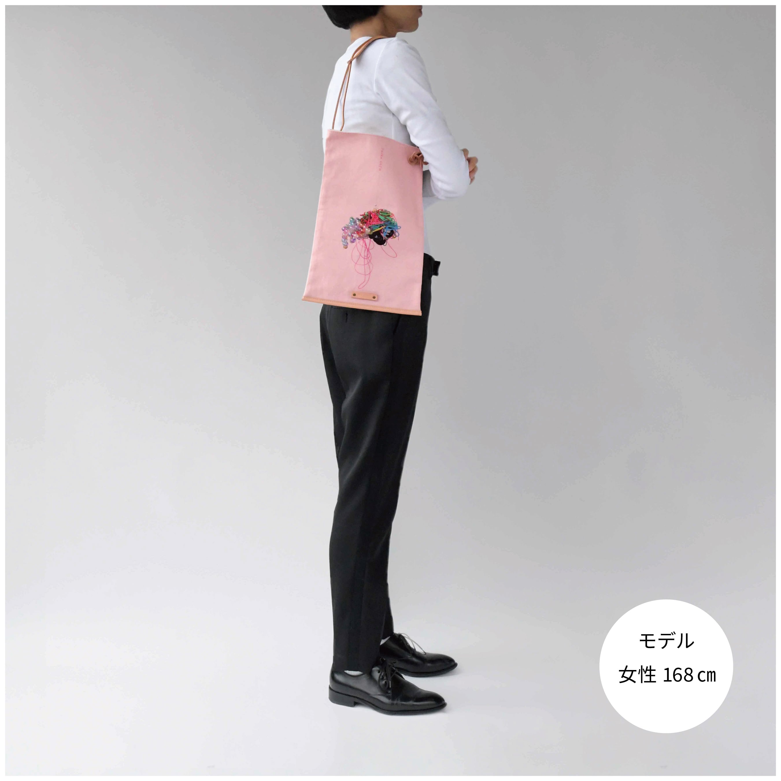 A4サイズも入る、縦長のスッキリしたシルエットと、長さを自由に調節できる革紐。ショルダーバッグやトートバッグ、ラフにたたんで片手でかかえたり、お出かけや仕事などさまざまなシーンにアレンジいただけます。工房の職人さんによって仕立てられた革のパーツが、上品なアクセントに。