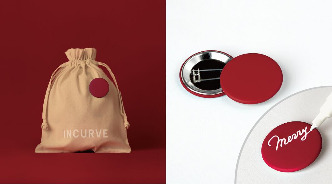 ギフトラッピング1点につき、クリスマスカラーの真っ赤な缶バッジを1個お付けいたします。